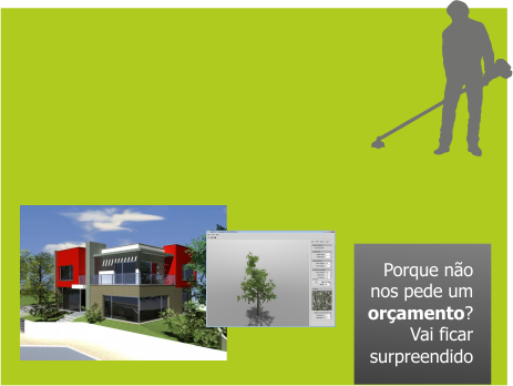 Sabia que projectamos o seu jardim em 3D? Claro, para que possa visualizar antecipadamente como vai ficar o seu jardim e o nosso trabalho... Porque não nos pede um projecto para o seu jardim? Não imagina a diferença que pode fazer pela sua casa...